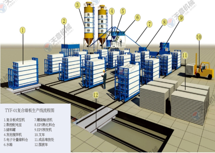 TYF-01型立式復(fù)合墻板生產(chǎn)線,設(shè)備占地面積小,產(chǎn)品一次成型,產(chǎn)量高。主機(jī)配有自動行走系統(tǒng),設(shè)備運(yùn)轉(zhuǎn)更簡單快捷,大型固定式攪拌設(shè)備,攪拌料漿更均勻,澆注效率更高。