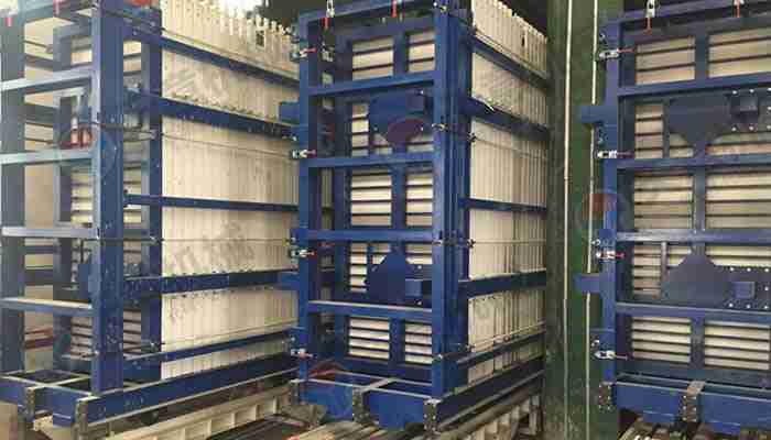 該復合墻板生產(chǎn)線立式旋轉(zhuǎn)臥式出板復合墻板成型機,一次可生產(chǎn)四十塊墻板,該生產(chǎn)線主要分為:配料攪拌系統(tǒng)、墻板成型系統(tǒng)、液壓整體開模系統(tǒng)、液壓翻轉(zhuǎn)系統(tǒng)、整體出板翻轉(zhuǎn)碼垛系統(tǒng)、成型機自動循環(huán)系統(tǒng)、變頻擺渡系統(tǒng)、數(shù)控配電系統(tǒng)等部件 組成。該生產(chǎn)線自動化程度高,液壓開合模,解決了傳統(tǒng)立式復合墻板機人工開合安全隱患,提高了工作效率。設(shè)備配有整體出板碼垛系統(tǒng),解決了傳統(tǒng)人工出板方式,減少產(chǎn)品的破損率,提高了產(chǎn)能。生產(chǎn)線使用密封式泵送系統(tǒng)配備雙工位注漿槍,注漿速度快密實度高,材料粘結(jié)更緊密。