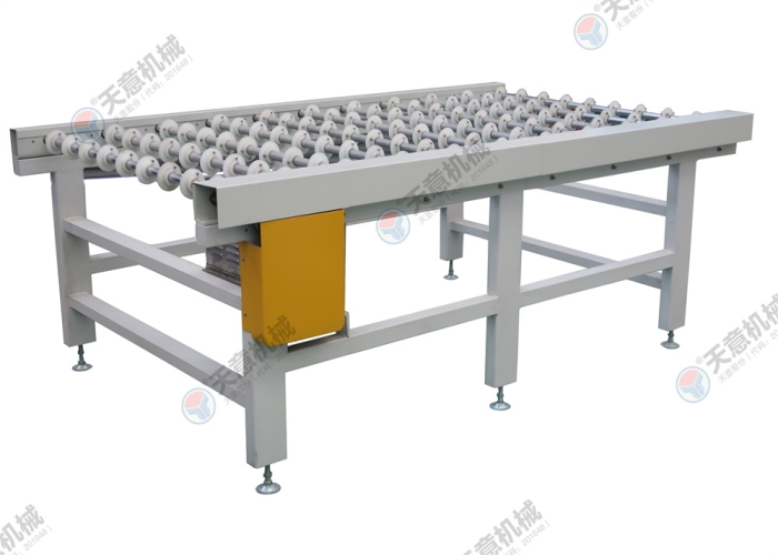 采用尼龍輪輸送,既能減少與膠面的接觸面積還能保證板材的平穩(wěn)輸送。