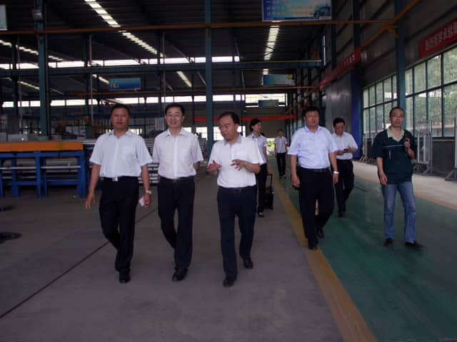 市領導先后參觀了我公司的6A辦公大樓、省級研究中心、體驗館、樣板別墅、集成房屋、設備生產(chǎn)車間以及鋁型材加工基地。每到一處,市領導都仔細詢問了技術與生產(chǎn)等相關問題。